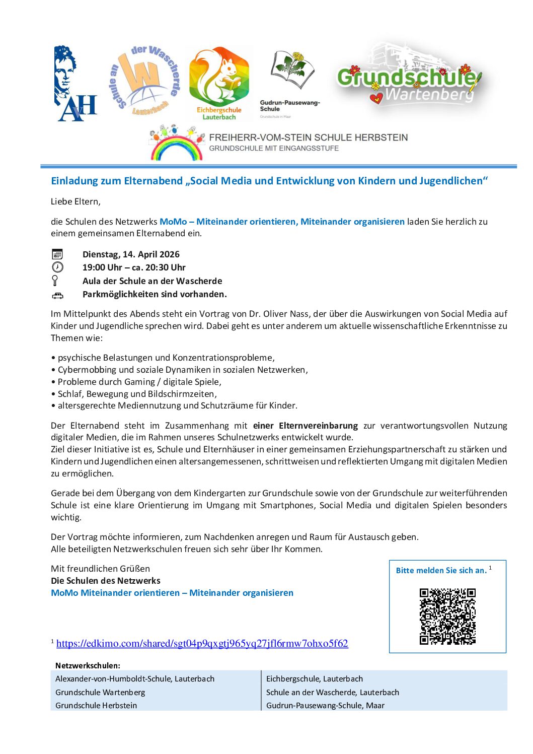 Auftaktveranstaltung mit Dr. Nass zum Umgang mit digitalen Spielen und Social media, 19 Uhr